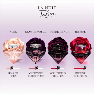 La Nuit Trésor Fleur de Nuit offre une nouvelle interprétation florale du parfum emblématique de l’amour, encore plus sensuelle et crémeuse.